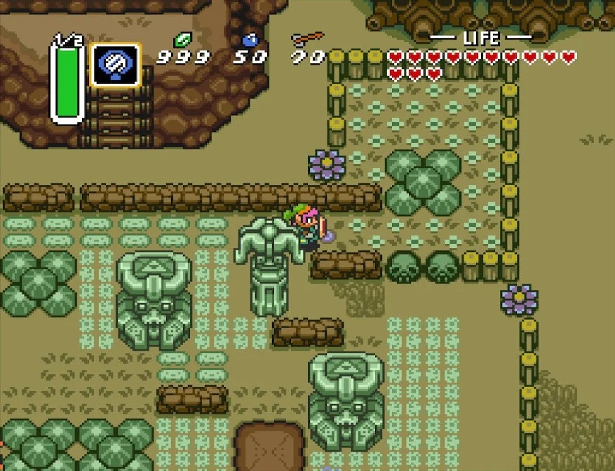 L’une des améliorations les plus importantes d’A Link to the Past par rapport au premier épisode est la possibilité pour Link de se déplacer dans huit directions plutôt que quatre. Le mouvement diagonal, qui semble anecdotique dans son énoncé, change profondément le sentiment de fluidité et de liberté du déplacement.