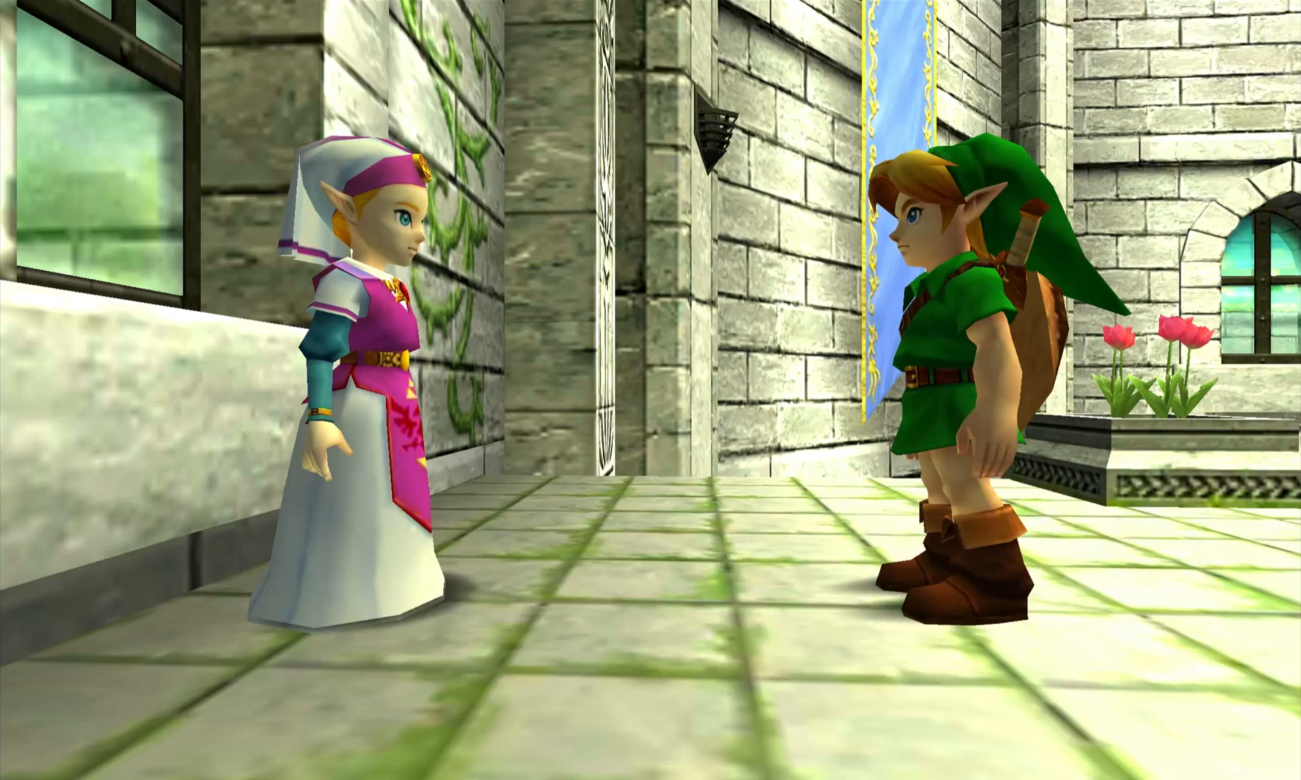The Legend of Zelda: Ocarina of Time 3D, sorti le 16 juin 2011 sur Nintendo 3DS, est développé par Grezzo et supervisé par Nintendo. Cette remasterisation apporte des améliorations graphiques significatives adaptées aux capacités de la 3DS, utilisant l’effet de relief de la console pour ajouter une profondeur visuelle au monde d’Hyrule. Les modèles des personnages sont entièrement reconstruits avec une résolution supérieure, les textures sont redessinées, et l’éclairage est repensé pour exploiter les possibilités de la nouvelle plateforme.