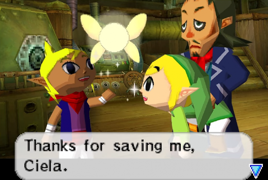 Ciela est la fée qui accompagne Link tout au long de l’aventure. Elle est découverte en état d’amnésie au début du jeu chez le vieil homme Papy Siwan. Son rôle d’abord guidant évolue au fil de l’aventure lorsque sa véritable identité se révèle : Ciela est l’esprit du Temps et du Courage, dont la mémoire a été effacée par Bellum pour la neutraliser.