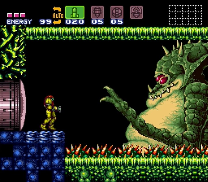 C’est une machine de forage géante Chozo devenue folle. Le combat est un puzzle mécanique en trois phases qui demande d’utiliser la Spider Ball pour grimper sur ses chenilles en mouvement et aspirer l’énergie de sa tête. C’est l’un des combats les plus complexes et satisfaisants de la série 2D, prouvant que le studio pouvait créer ses propres monstres iconiques.