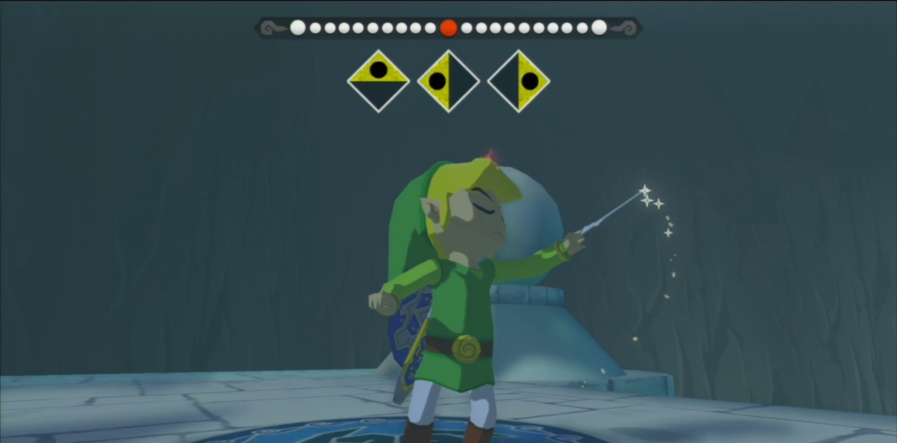 Cette mécanique de direction musicale est l’héritière directe de l’Ocarina du Temps de Ocarina of Time, mais elle l’exprime différemment. Là où l’Ocarina était un instrument mélodique dont les gammes de notes composaient des mélodies identifiables, la Baguette des Vents est un outil de rythme et de direction, contrôlant non pas les hauteurs de son mais le tempo et la cadence du monde