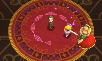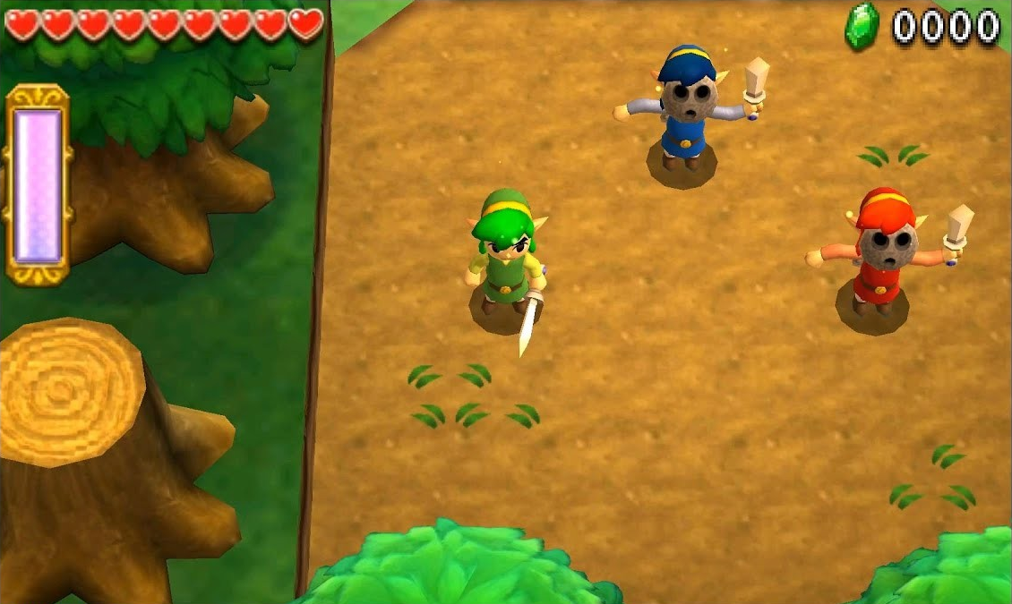 L’équipe choisit de réduire le nombre de joueurs à 3. Avec 4 personnages actifs simultanément, la lisibilité des situations de combat et des énigmes se dégrade sur le petit écran de la 3DS. Le chiffre 3 possède également une résonance directe avec la mythologie de la série, liée au Triforce et à ses 3 composantes : Puissance, Sagesse et Courage.