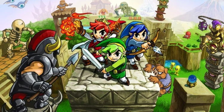 Il faut revenir à 2 expériences multijoueurs antérieures : Four Swords en 2002, inclus avec A Link to the Past sur Game Boy Advance, et Four Swords Adventures en 2004 sur GameCube. Ces 2 titres proposaient une aventure où 4 incarnations de Link, contrôlées par 4 joueurs, coopéraient pour résoudre des énigmes dans des donjons.