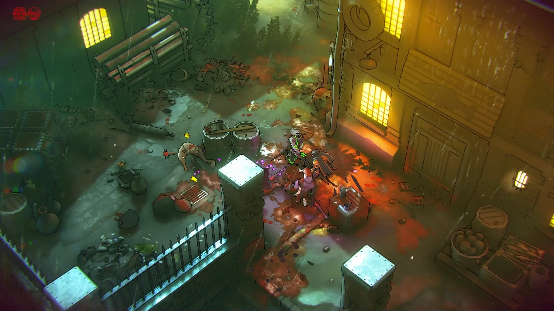 L’esthétique bloodpunk (dans ce jeu, cela se nomme ainsi) pose un cadre cohérent avec ses environnements portuaires et industriels, ses éclairages sombres et son bestiaire anthropomorphique varié. Le rendu est lisible pendant les combats et c’est déjà une vraie qualité pour un jeu d’action aussi rapide, où la lisibilité de l’écran est primordiale.