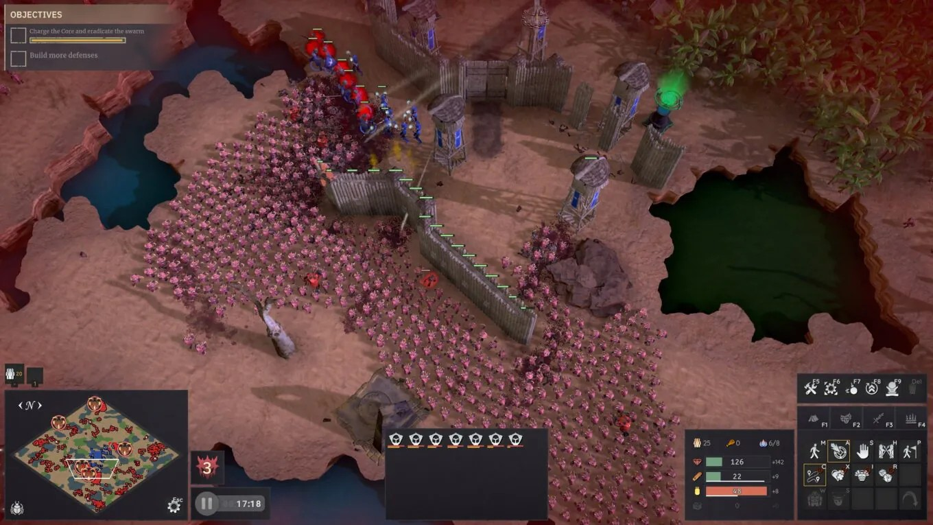 À tout moment, on peut figer le temps pour planifier constructions, déplacements d’unités ou repositionnements, un excellent moyen pour les joueurs assez novices de gérer le stress de la gestion en temps réel. Les vagues restent massives, et des ennemis spéciaux peuvent prendre de court même les stratèges préparés.