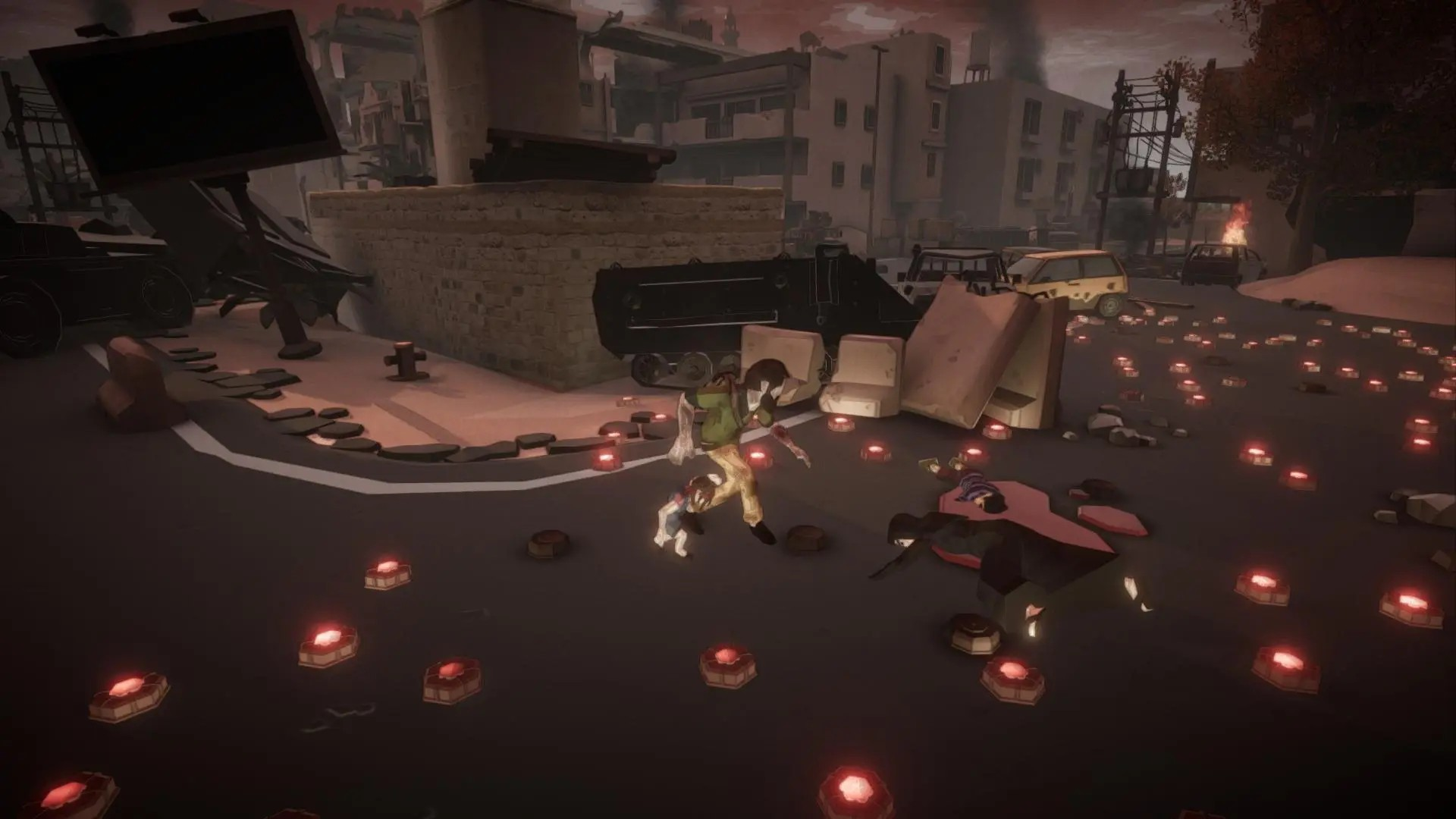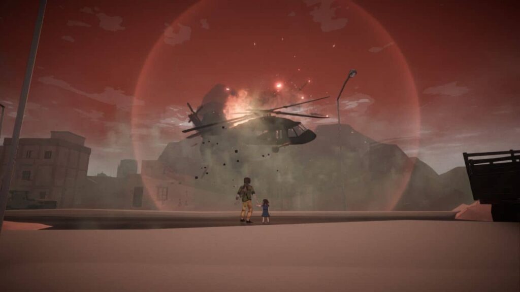 Les développeurs ont misé sur un style 2.5D réaliste qui privilégie l’atmosphère à la prouesse technique. Les décors urbains dévastés transmettent efficacement la désolation d’une zone de conflit, avec des bâtiments écroulés et des rues jonchées de débris. Les animations sont propres, Basir se déplace de manière fluide, mais certaines interactions manquent encore de finition, ce qui n’est pas étonnant pour un jeu en développement. La direction artistique sobre renforce l’immersion. Le plus impactant sont les effets visuels lors des moments de stress, où l’écran perd ses couleurs et devient saturé, traduisant l’état psychologique de Basir.