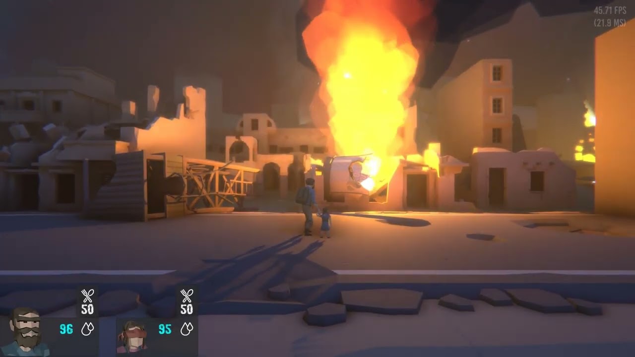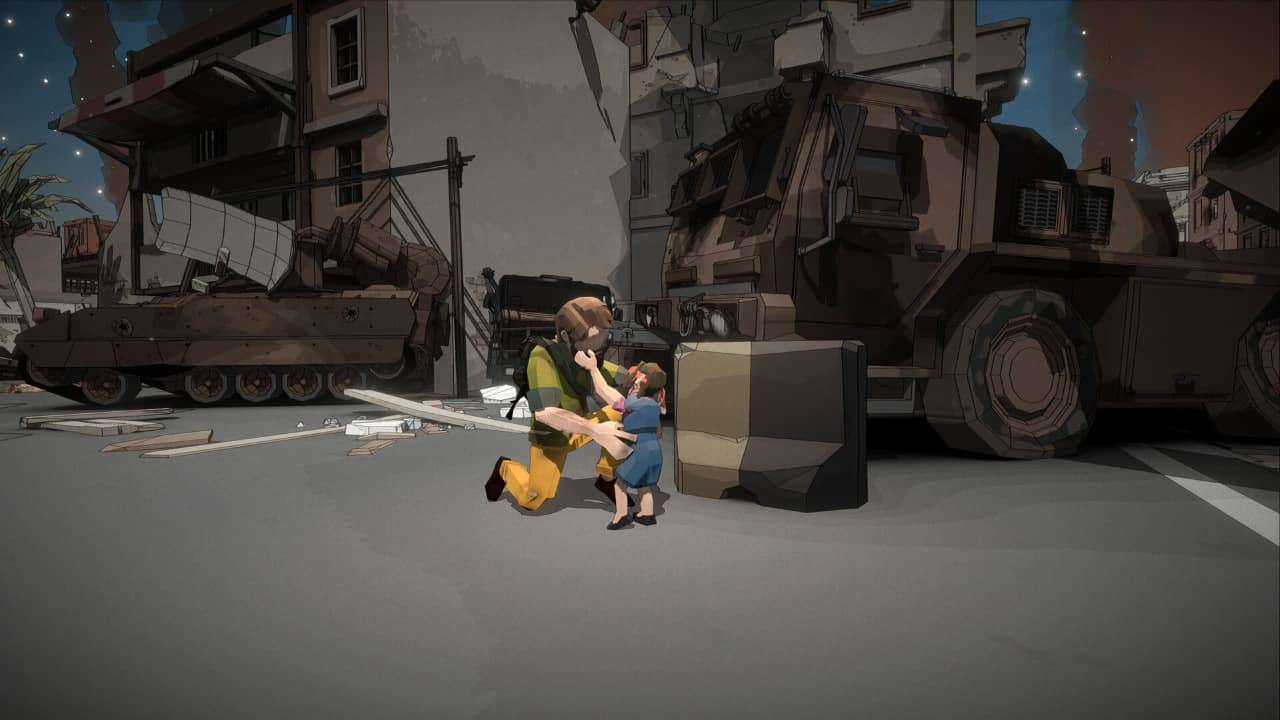 L’histoire de Fatherhood nous place dans la peau de Basir, un père qui tente désespérément de protéger Asma, sa fille devenue aveugle, au cœur d’une zone de guerre au Moyen-Orient. On débute dans un environnement urbain dévasté, où chaque coin de rue peut dissimuler soldats et rebelles. Le scénario mise sur la relation père-fille et les dilemmes moraux qui en découlent. Faut-il aider les autres civils au risque de compromettre la sécurité d’Asma, ou se concentrer uniquement sur sa survie ? Cette tension narrative est horrible et nous rappelle que voir les choses derrière un écran et agir ce n’est pas la même chose, notamment lors d’une séquence où l’on doit choisir d’aider un autre père à sauver son enfant piégé sous des décombres, avec un chronomètre visuel qui amplifie la pression. Le jeu promet plusieurs fins selon nos choix, reste à voir si la version complète saura vraiment nous surprendre.