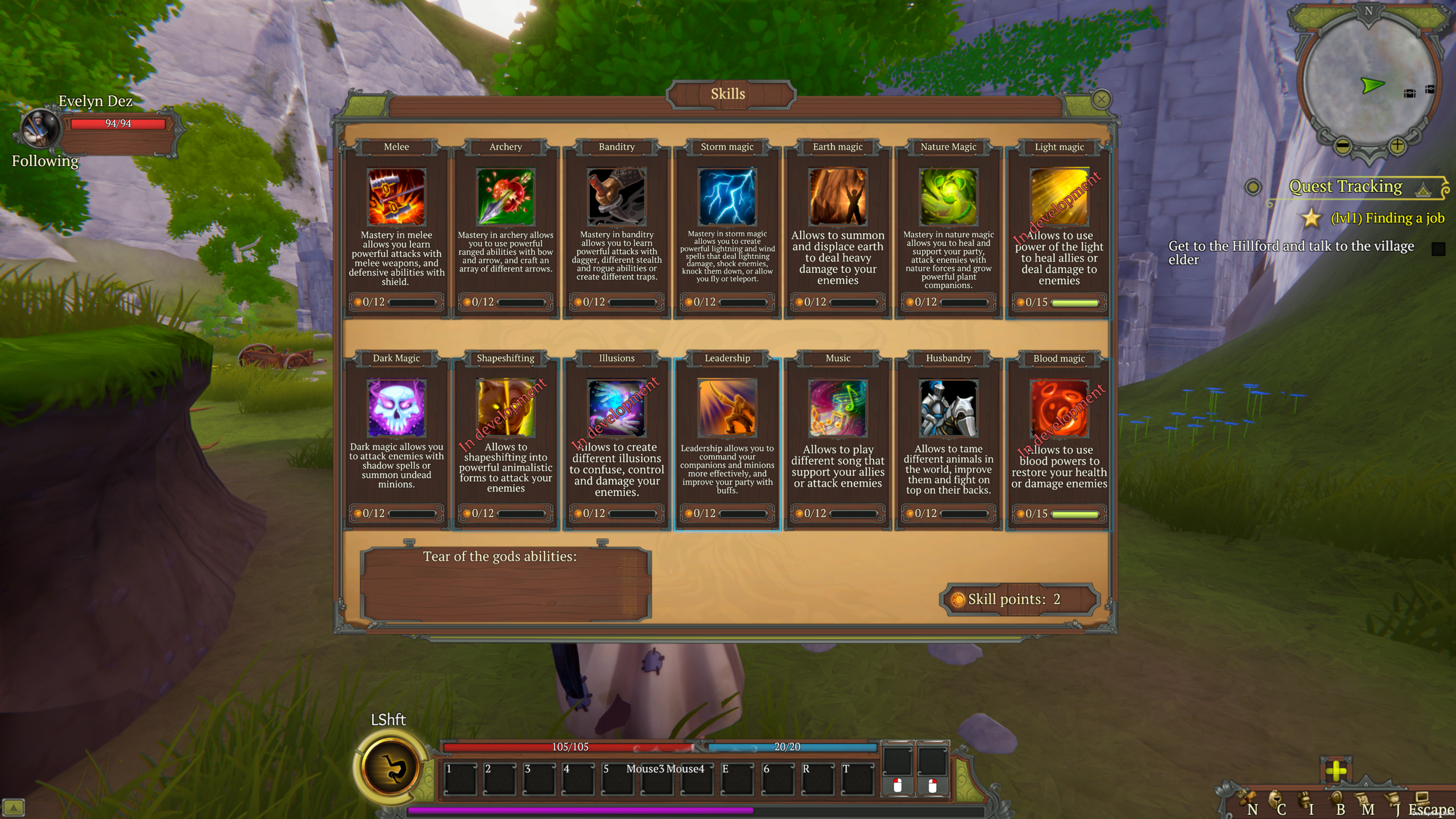 Les arbres de compétences sont nourris et laissent une grande liberté d’expérimentation. On peut construire un mage corps-à-corps, un archer furtif orienté pièges, ou opter pour la nécromancie avec ses armées de squelettes. Le système de crafting complète bien cette logique : tisserands, forgerons, alchimistes, chaque ressource ramassée en exploration peut trouver une utilité. Certains arbres sont encore en phase de développement, donc inaccessibles sur la build en cours.