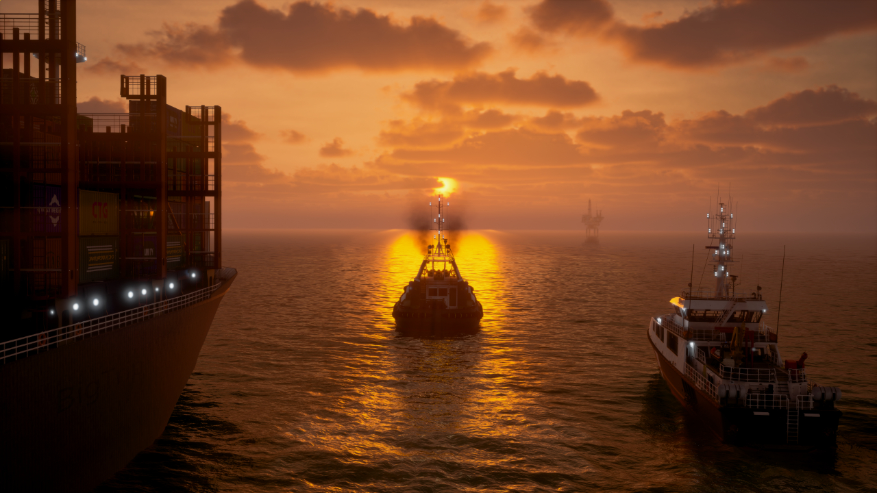 L’IA des navires civils ajoute de la vie aux zones portuaires. Croiser d’autres embarcations suivant leurs propres routes commerciales renforce l’impression d’évoluer dans un écosystème maritime authentique.