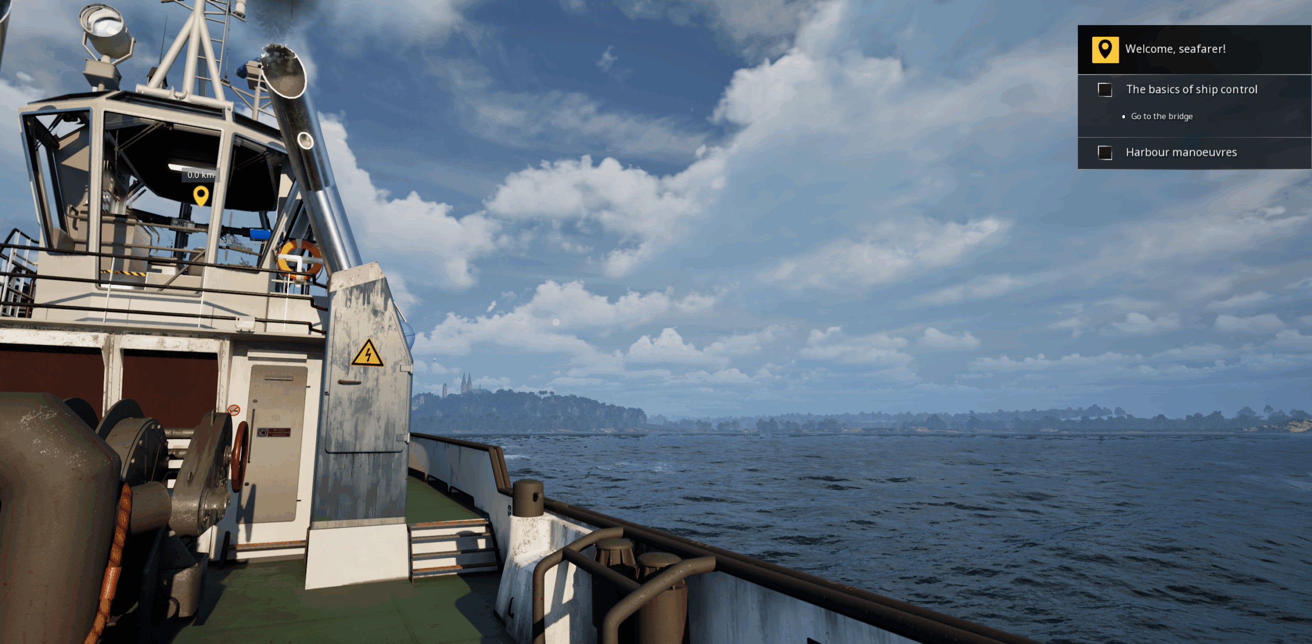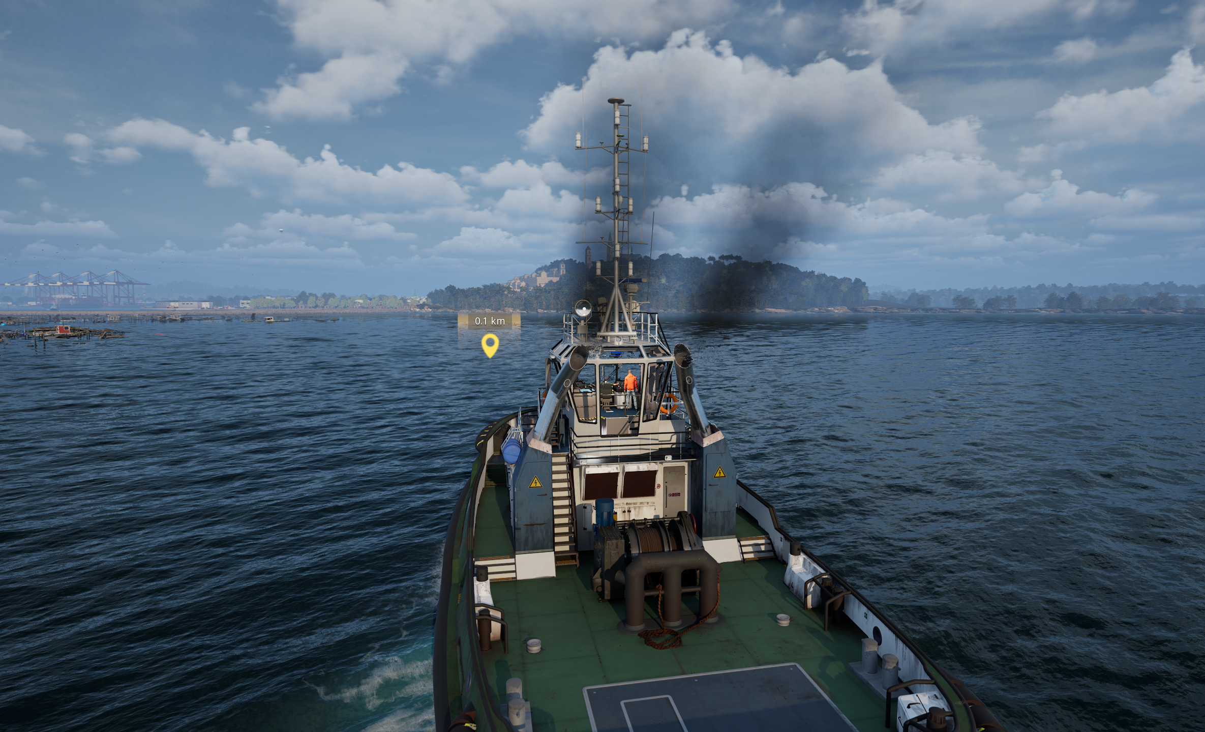 L’animation des navires constitue l’un des points forts du jeu, j’ai envie de dire encore heureux pour un simulateur. Chaque embarcation réagit de manière crédible aux mouvements de la mer, avec des tangages et roulis qui varient selon la taille et le type de navire. Le remorqueur vif et nerveux contraste avec la masse imposante du cargo, créant des sensations de pilotage distinctes.
