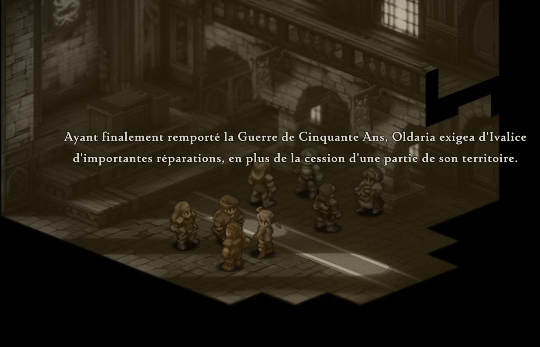 L’histoire de FFT demeure l’un des scénarios les plus matures et complexes de la franchise Final Fantasy. On suit les aventures de Ramza Beoulve, troisième fils d’une illustre famille de chevaliers, et de son ami d’enfance Delita, dans un royaume d’Ivalice déchiré par la Guerre des Lions. Ce conflit oppose deux factions nobles qui se disputent la régence d’un royaume dont le roi est mort, laissant un héritier de seulement deux ans.