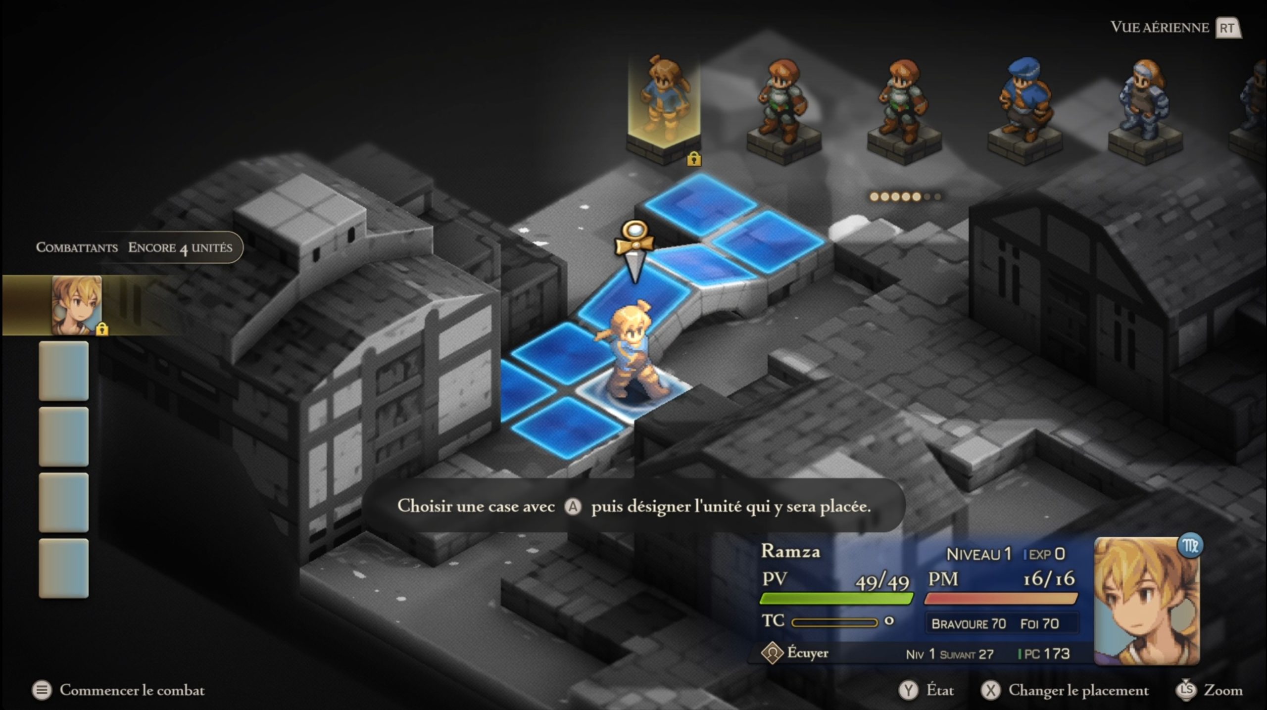 L’une des spécificités du gameplay réside dans son système de Charge Time ou Temps de Charge (TC). Contrairement aux RPG tactiques classiques comme Fire Emblem qui alternent entre phases joueur et ennemi, Final Fantasy Tactics utilise un système dynamique basé sur la vitesse de chaque unité.