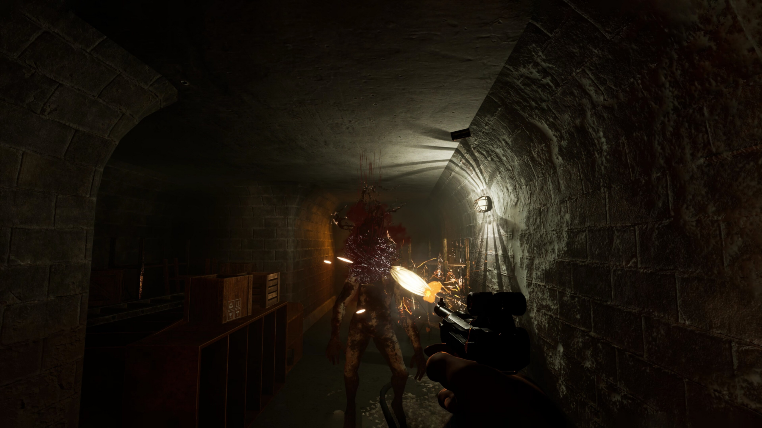 Si Mortanis Prisoners se présente comme un survival horror shooter, le gameplay penche davantage vers la furtivité que vers l’action directe. Les gardes humains patrouillent selon des itinéraires peu prévisibles, et les ennemis surnaturels réagissent fortement aux bruits et aux mouvements. On passe une bonne partie du jeu à se fondre dans les ombres, à attendre que les menaces passent, à calculer chaque déplacement avant d’agir.
