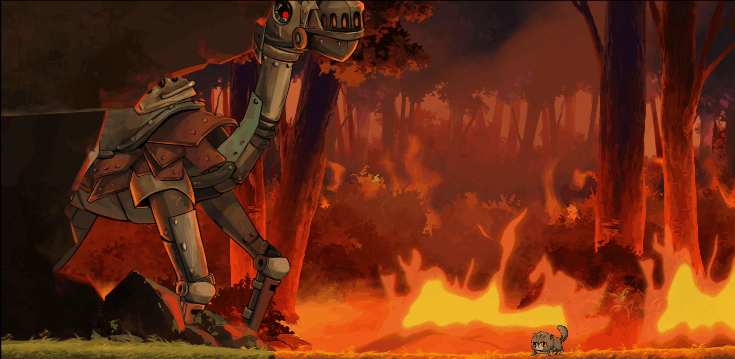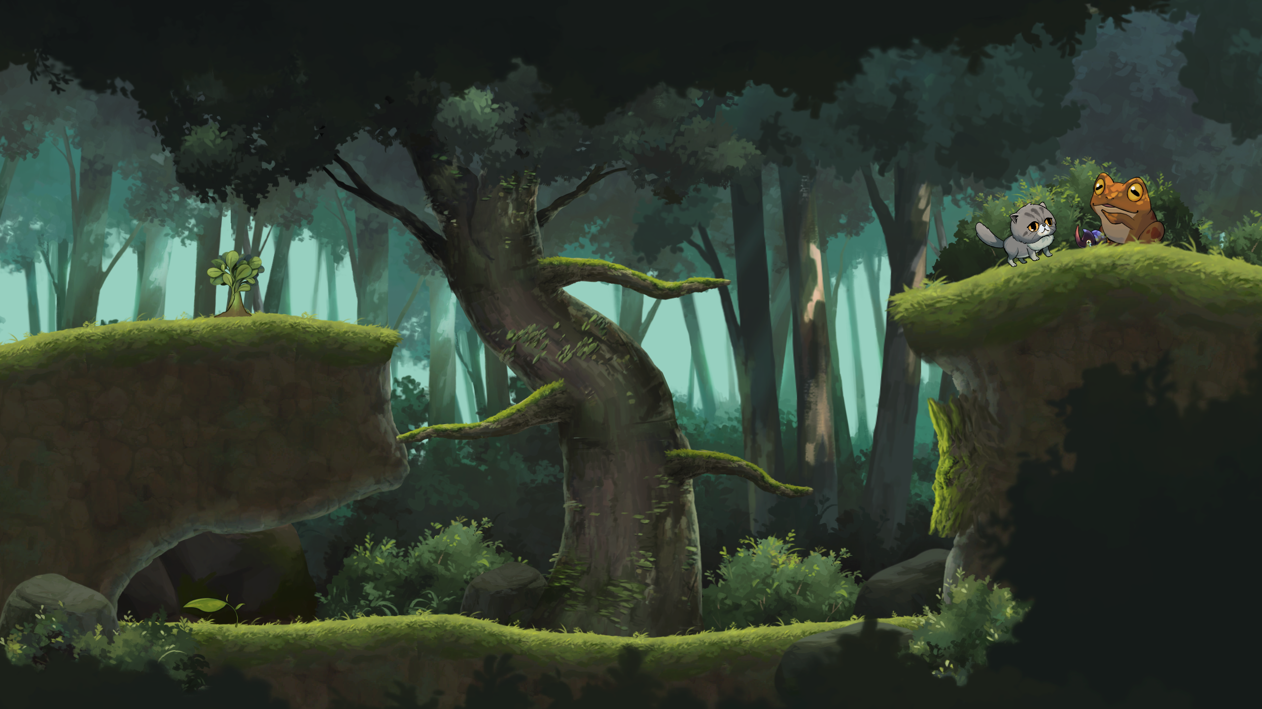 Princess of the Water Lilies adopte une narration visuelle, un choix audacieux et que j’approuve, pour moi un jeu sans dialogue est aussi percutant qu’un jeu avec des voix. On y incarne Princess, une adorable chatte grise élevée par une famille de grenouilles dans un étang paisible. Cela est le point de départ d’une aventure où notre héroïne féline découvre progressivement que son monde idyllique est menacé par de mystérieuses créatures mécaniques. Le sort du monde repose désormais sur ses petites pattes poilues, et contrairement à la légende des neuf vies, Princess n’en possède qu’une seule.