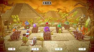 Le principe général mélange jeu de plateau et épreuves compétitives. Les joueurs se déplacent sur différents plateaux en lançant les dés, déclenchant des événements ou des affrontements sous forme de mini-jeux. Ceux-ci sont au nombre de seize et proposent des défis variés : courses, épreuves d’équilibre, défis de timing ou encore situations plus tactiques où l’on peut saboter ses adversaires. Les manches sont courtes et nerveuses, ce qui permet d’enchaîner les parties sans temps mort. Le concept fonctionne plutôt bien lors des premières sessions, surtout lorsqu’on joue à plusieurs sur le même écran, car le jeu encourage clairement les trahisons et les retournements de situation de dernière seconde. Dans ce contexte, les parties deviennent rapidement bruyantes, et l’on se surprend à provoquer ses adversaires ou à célébrer une victoire volée au dernier moment.