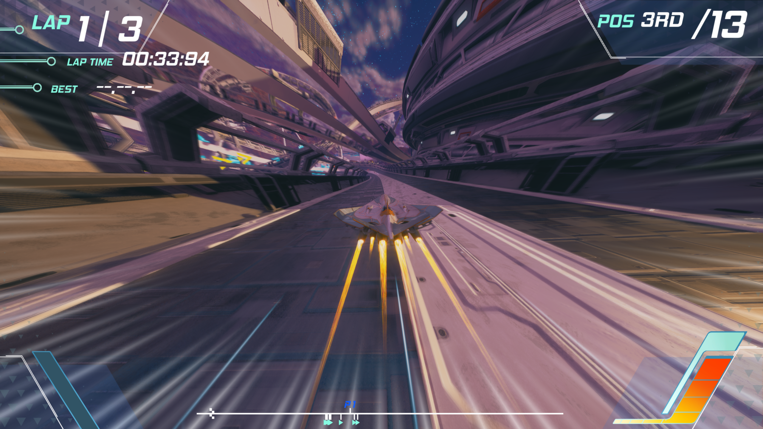 Le jeu affiche clairement ses ambitions qui sont de chasser sur les terres de WipEout. Et il faut avouer que sur la piste, les sensations sont grisantes. Le pilotage est nerveux, la réponse des vaisseaux est immédiate, et j’ai pris un réel plaisir à maîtriser les aérofreins pour négocier les virages en épingle. C’est fluide, c’est rapide, et quand on enchaîne un tour parfait, c’est jouissif.